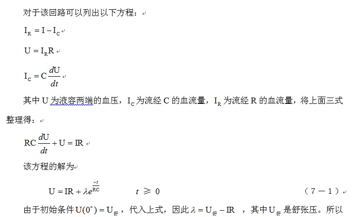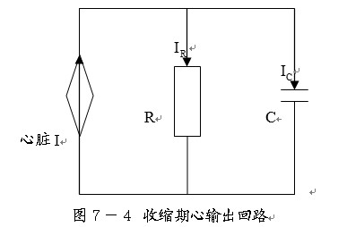 下圖是心臟收縮期回路簡單模擬,血管的狀態(tài)用R和C簡單并聯(lián)表示。由于血管各處都存在液容,實(shí)際的情況可能很復(fù)雜,但用簡單參數(shù)分析,也同樣能反映血液循環(huán)的一些特性。為了分析的方便,將心臟射血輸出量近似為恒流源。