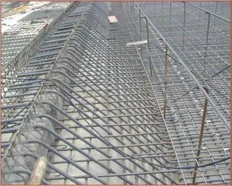混凝土墻體中的預(yù)留導(dǎo)管、線盒:洞口尺寸≥200mm時(shí),洞口設(shè)附加筋,構(gòu)造加筋、預(yù)埋件、電器線管、線盒、預(yù)應(yīng)力筋及其配件等位置準(zhǔn)確,綁扎牢固,需焊接固定的部位,不準(zhǔn)咬傷受力筋。安裝電盒時(shí)盡量不切斷鋼筋,電盒焊在附加的鋼筋上,安裝牢固,不得焊在主筋上。