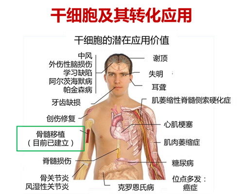 除此之外,利用干細胞進行免疫調(diào)節(jié)、關(guān)節(jié)修復(fù)以及神經(jīng)退行性疾病治療,也已經(jīng)進入臨床研究階段。這些重要應(yīng)用的安全性及有效性還需經(jīng)過更長時間的觀察。如確定沒有不良反應(yīng)又能證明臨床有效,通過干細胞進行更多組織細胞的再生治療,將會從根本上治愈組織衰老和功能退化等疾病。