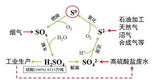 化學原料與制品、石化、醫(yī)藥、農藥、染料化工、焦化、造紙等生產過程,硫及其硫的不同形式產物被廣泛應用,目前我國每年消耗硫酸超過1億噸,硫酸鹽廢水排放體量巨大,工業(yè)生產過程每年產生大量的SO2,這些物質最終以不同的形式硫進入生產廢水和固廢中。其中含硫廢水是最主要的硫污染源,這類工業(yè)廢水有機污染物濃度高、產生量大、污染物組分復雜,廢水中含有多種難降解化學物質和毒性物質,廢水難生化降解。