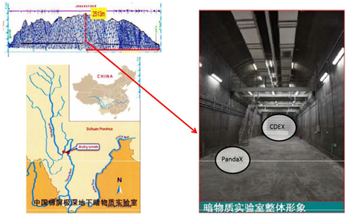圖5 中國錦屏隧道—— 當(dāng)今世界最得天獨厚的暗物質(zhì)地下實驗室