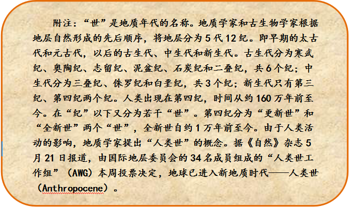 在2000年的一個國際會議上,1995年諾貝爾化學(xué)獎得主保羅-克魯岑提出,當(dāng)今人類活動對自然環(huán)境的影響已經(jīng)超過了自然狀態(tài)的變化,應(yīng)該定義一個新的地質(zhì)時代,叫人類世。我國科學(xué)家劉東生院士參加了此會,回國后就極力推薦這個詞。