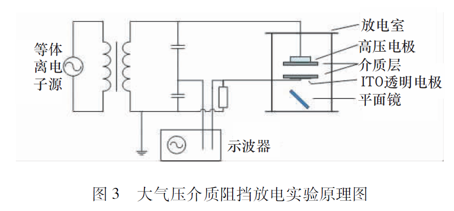 我們這里研究的大氣壓介質(zhì)阻擋放電和剛才講的非線性動(dòng)力學(xué)到底有什么關(guān)系呢?圖3是華南理工大學(xué)的放電實(shí)驗(yàn)原理圖。從電路的角度來看,這個(gè)實(shí)驗(yàn)系統(tǒng)有一個(gè)交流電源,這個(gè)電源連接到放電室中,放電室里有電極和阻擋介質(zhì),在實(shí)驗(yàn)中我們可以直接測量電源電壓和放電電流。