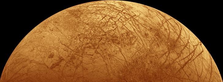 對木衛(wèi)二最早的空間觀測可追溯到上世紀(jì)70年代。它的表面平坦;隕石坑很少,只有3個(gè)直徑大于5km的。這是美國發(fā)射的旅行者2號拍攝的影像: